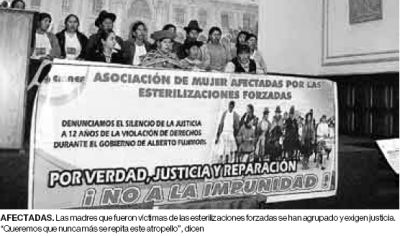 Durante el gobierno de Fujimori se llevaron a cabo «campañas de esterilización» a la población indígena y pobre del Perú. Fueron esterilizaciones que se hicieron dentro de un programa de Planificación Familiar que contempaba la Anticoncepción Quirúrgica Voluntaria (AQV). La esterilización se aplicó a unas 300, 000 mujeres y 22,000 hombres y en muchas ocasiones no fueron efectuadas con el consentimiento de las y los afectados, de ello dan cuenta las 2.074 denuncias que se han archivado- Así es el estado peruano con las mujeres indígenas: